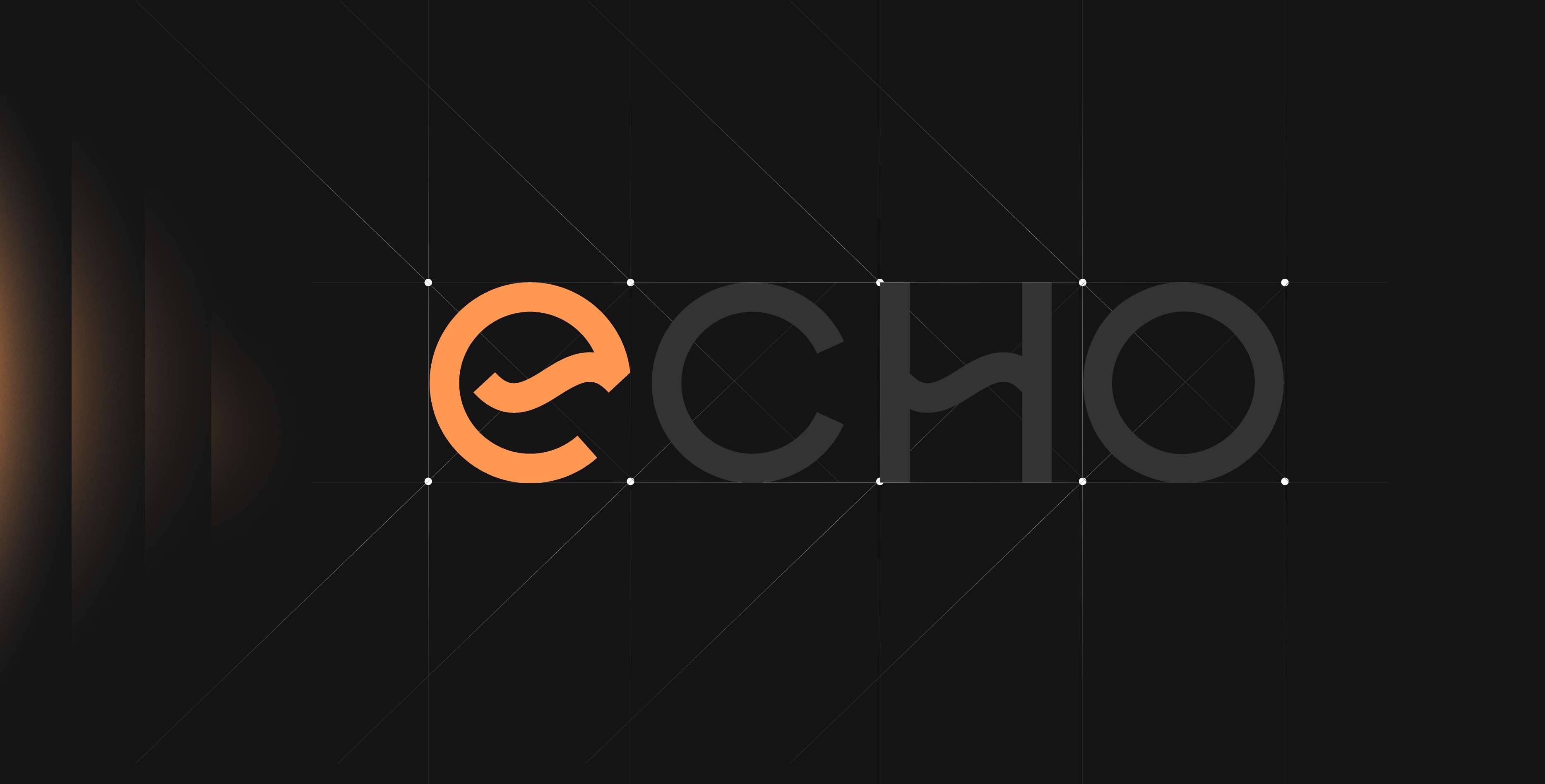 The Echo logomark combines the movement of sound with the fluid motion of a flag. The “e” and “h”